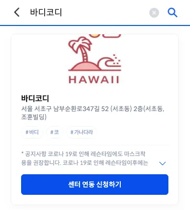 검색 후 나오는 리스트에서 내가 찾던 센터를 찾아 ‘연동신청' 을 누르면 연동 완료!
