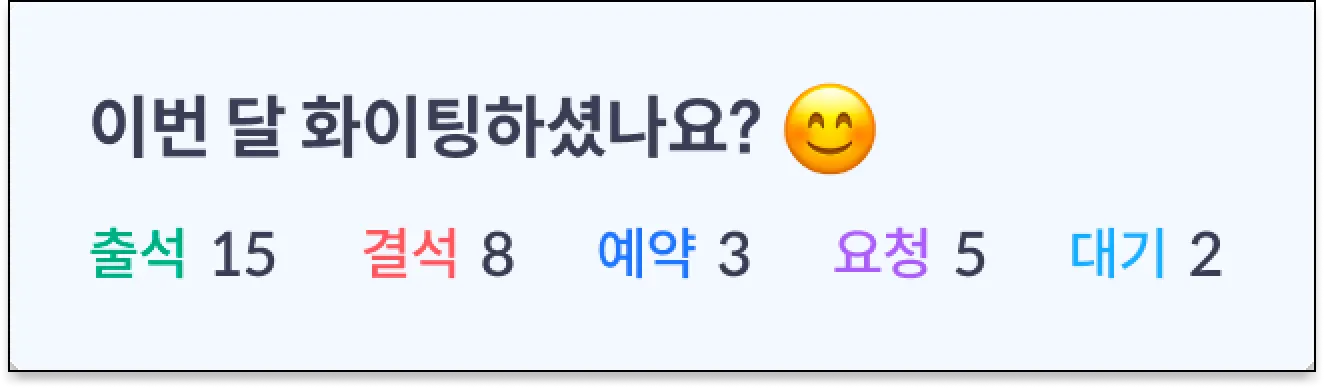 업데이트 후 스케줄 요약 내용이에요. 요청과 대기가 제외되고, 입장이 추가됐어요.
