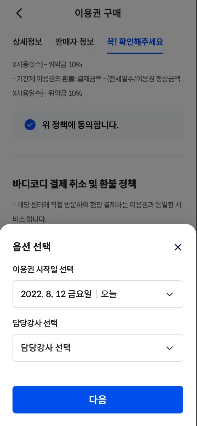 회원분들이 이용권을 구매하실 때 선택할 수 있는 강사가 1명이건 여러 명이건 무조건 강사를 선택해야 하는 불편 현상을 확인하였습니다.